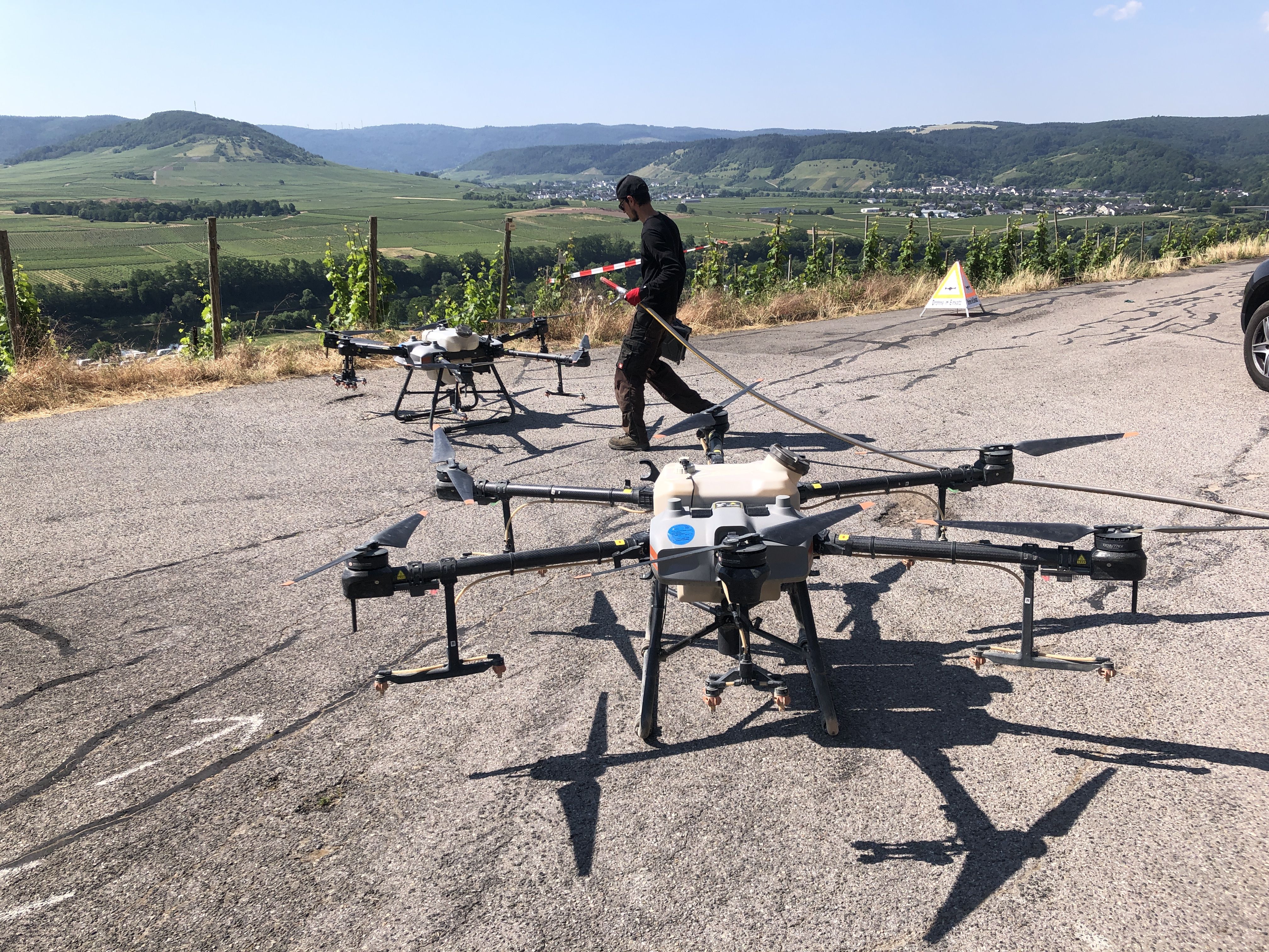 Von Mai bis August 2023 habe ich über Weinberg-Steilhanglagen an Mosel, Rhein und im Ahrtal Pflanzenschutzmittel ausgebracht mit der DJI AGRAS T30 Pflanzenschutzdrohne, der größten in Europa zugelassenen Agrar-Drohne. Mehr Informationen, Bilder und Videos folgen demnächst...